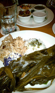 That night we headed over to Tiki's Grill and Bar, which isn't the most OG Hawaiian food around, but at least I got the Aloha Friday Hawaiian Plate which had some items I hadn't ingested before: Kalua pig, lau lau, lomi salmon, ahi poke, mashed Okinawan sweet potato (the purple stuff), coconut haupia, and poi. I think growing up in L.A. really spoiled me to want to eat something totally different every day, so I always jump at the chance to try something new. I've got to find this dish in L.A. somewhere.
