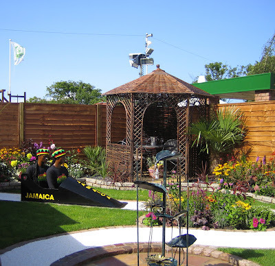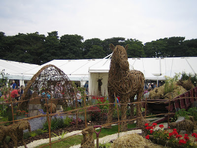 We had a lovely day at Tatton Park Flower Show. As I've been away all week at Writers Holiday (I'll post about that next) this is my first opportunity to upload my photos. Here are a few of the best to inspire you with your own gardens. I love the Votes for Women one, and the ones done by the schools. Here's Thomas the Tank Engine. Since it's Olympics year we'll start with the pole vaulter, worked in wicker.