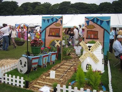 What a glorious day! After all the rain, particular yesterday when the rain sheeted down, today was warm and sunny with not a drop. Wonderful! And what a relief for the organisers. We had a great day, together with our daughter and her friend. We watched the display dog team, the falconry display and the Knights of the damned doing their jousting. Ate ice cream, marvelled at the flower displays and gardens, and bought a bit of bling from the local craft fair. Perfect. The show continues for the rest of this week. Here are some pictures to delight you.