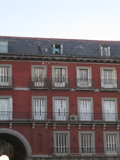 How about hanging out your washing on the roof, as this guy is doing in the Plaza Mayor.