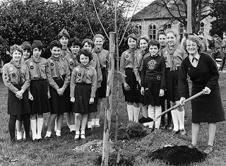 I was delighted to read that there is to be a mammoth planting of trees to celebrate the Queen's diamond jubilee. It will be called the Jubilee Wood Project and new areas of woodland are to be planted across Britain, one for each year of the Queen's reign. The Queen planted the first on her Norfolk estate, but local children also joined in. It reminded me of the many times in the past when I have been involved in a similar project, because you don't have to be the Queen in order to plant a few trees. Here I am with my Guide company planting a row of trees beside the River Kent in Kendal.