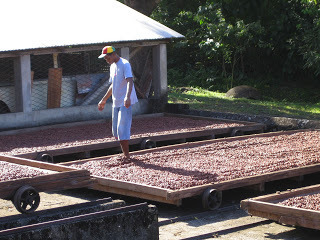 One of our favourite islands was Grenada where we visited a spice estate. The guy in the picture is moving the cocoa beans in order to help them dry out. We were shown how nutmeg and mace were produced, and later visited the distribution centre.