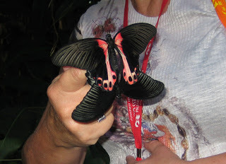 Our last excursion was Christmas Day where we visited a butterfly farm on Aruba. I loved the butterflies, which were huge and brightly coloured. The pair the woman is holding were mating. Well, it has to be done somehow.