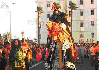 Traditionally Spanish children do not get their presents on Christmas Day from Santa Claus, or Papa Noel, as he is called. They have to wait until the Fiesta de Los Reyes. What we would call Epiphany. By now we're packing our Christmas decorations away, but the Spanish are still partying. The excitement starts in the late afternoon or early evening of January 5 when there is often a parade through the streets with camels, yes, real ones, carrying the three kings, Melchor, Gazpar and Baltasar, who throw sweets into the watching crowds. A custom that no doubt started in Moorish times. A whole procession of dancers and musicians, trailers and floats, will follow. It is truly a sight to see. The little girls dress up in their flamenco dresses, little boys as kings or drummer boys.They run alongside with their little bags catching gifts and sweets.