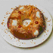 The children wake in great excitement the next morning to find their presents. For breakfast or after lunch, the family will eat the typical dessert of the day, the 'Roscón de los Reyes'. This is a large ring shaped cake or sweet bread that is decorated with candied fruits, symbolic of the emeralds and rubies that adorned the robes of the three kings, sometimes a gold paper crown is often provided to decorate the cake. Hidden inside it are surprises 'sorpresas'. The one who finds the lucky prize is King or Queen for the day while he who ends up with the unlucky bean is expected to pay for next years Kings' Cake – and they are not cheap!
