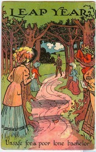 The tradition continued, with merry belittlements to remind women how little power they had the rest of the time. Men had to pay a fine or give a silk dress if they refused marriage proposals. Women on the prowl for husbands sported red petticoats as warning so poor beleaguered men could dash in the other direction. Haha.