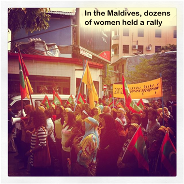 Egyptian women were not the only ones to take their demands to the street last Thursday. Women in Fiji, the Maldives, California, Canada and Israel called to public attention everything from police brutality to sexual assault to women workers' rights.