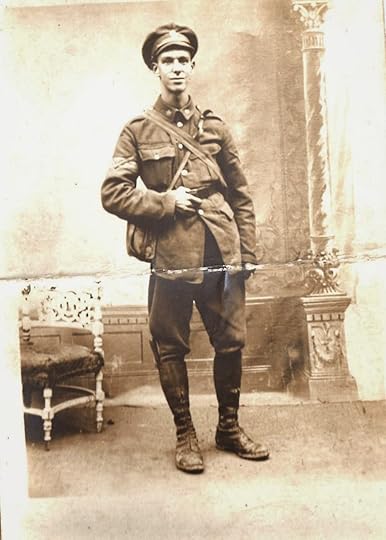 Is there a particular photo, piece of art, poetry or quote that strikes a chord with you? Why?On my desk I have two bulletin boards where I post photos, articles and other items. At the moment these boards are tucked away because we are selling our house, however, I can tell you that I have several photos from a WWI museum my husband and I visited posted on them. Photos of soldiers walking a battlefield, the bombed out town of Ypres, a forest that has been decimated except for tree stumps, soldiers wearing gas masks. In addition, there is a photo of my grandfather in WWI uniform at the age of nineteen.
