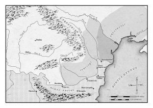 The Tervingi came from the lands to the north of the Danube River and the west of the Black Sea—the area now occupied by northern Romania, Moldova and southern Ukraine. The Ostrogoths’ antecedent tribe—the Greuthungi—inhabited the lands to the east, closer to the Black Sea. Hence, Cassiodorus called the two related peoples Visigothi and Ostrogothi: Western Goths and Eastern Goths.