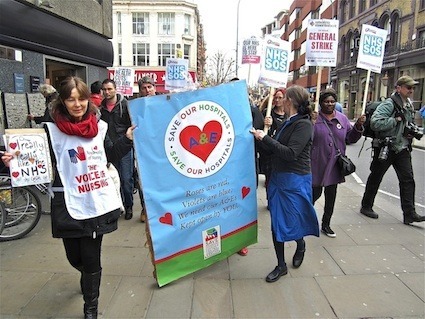 Note: The photo at the top of this article is from Flickr, from my set of photos of a rally to save Lewisham Hospital on February 15, 2013. For further information on the plans outlined above, please see this Open Democracy article, and this briefing by Keep Our NHS Public.