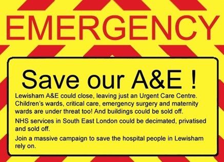 For further information, please see the Save Lewisham A&E campaign, and the Lewisham Keep Our NHS Public campaign. You may also find this interview with Iain Wilson of Save Lewisham A&E useful.