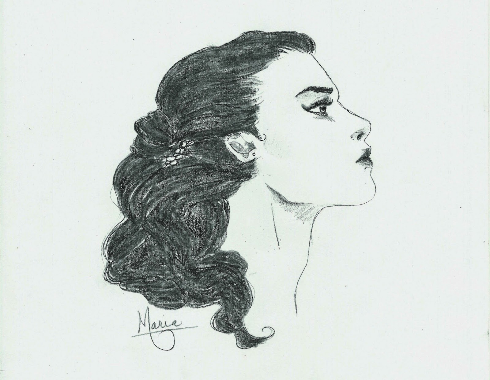 A funny thing happened...I was looking for pictures of my characters (because who doesn't like to do that?) and I opened my mouth like I do and told Mirriam how hard it was. And she said, "You know, I'd actually love to toy with sketches of them. Quick, shoot me brief descriptions and personality!" Well, I wasn't quick, but it happened. I've actually watched Mirriam sketch, and it's really maddening. The girl can whip off a decent doodle under one's eye with lightning speed. But I tend to be less jealous of people's skills when I get to mooch off them.