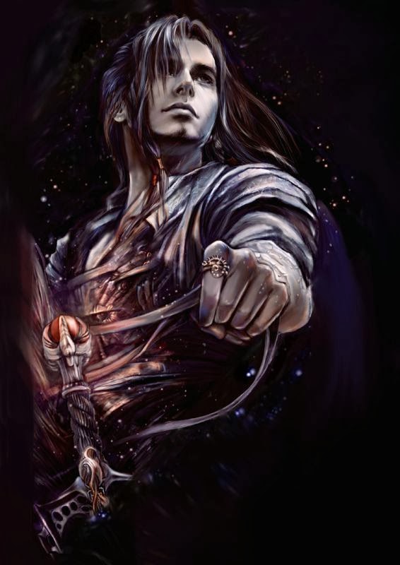 The man upon whose arm she stood was almost unrecognizable to [him]. Accustomed to plain dress, with perhaps only a little adornment to break the monotony of dark, earthy colours in which the man so often clothed himself, his cousin stood instead this evening in a tunic of crimson: a deep, guttural red chased over heavily with embroidered work of black dragons, picked out with copper thread to lend the creatures a malevolent dimension. cruxgang