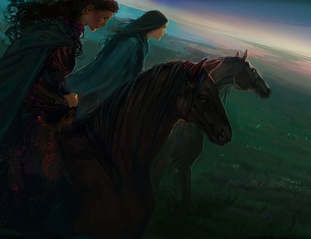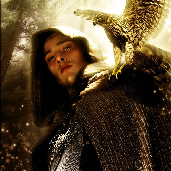 He went off, spurs sparking light in the gloom, the sound of his boots and his horse’s shod hooves ringing on the cobbles. The mists curled around him as he mounted, he and his great gyrfalcon etched and smudged dark grey against the grey steel sky, framed by the old timber ramparts of the yard walls. He turned and turned about, settled in, and left with one last wave of his hand through the yard gate. The soft drub of the hunter’s hooves on the damp turf of the paddock rolled back to her, softly, softly…until it, too, faded into the grey of the October morning.Plenilune