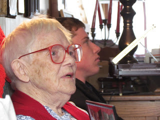 My grandma will be 98 this year. Can't say no, even if we spend more time in the car than plowing through turkey. She's as lucid as most 20 year olds. No hearing aid. Her knee doesn't bend but she could still make a Marine jump.