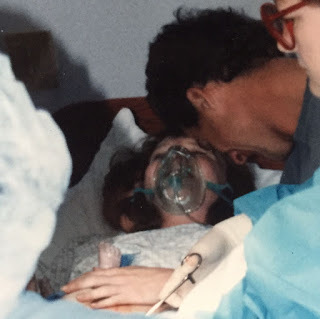Close to 5:00 am, Michael was on the way. The doctor arrived in time to catch him. I stayed up top with Heather, my hot breath in her face, as they told her to push. The doctor inserted forceps inside her, clamped his tiny little head to pull him out. It was about that time I became a sobbing mess.