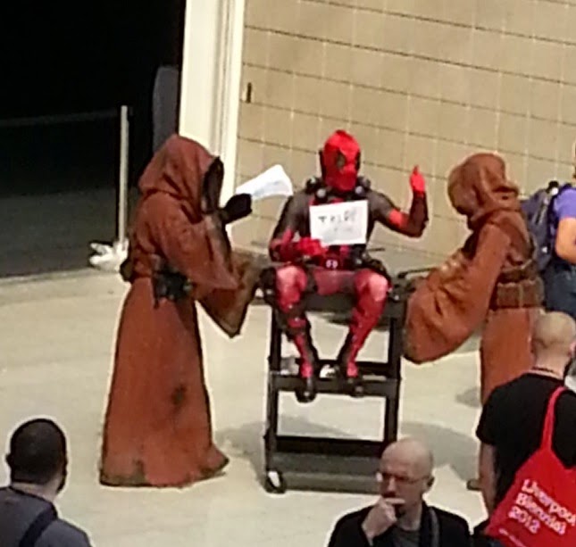 After having not written at all since getting on the hell flight, I was pleased to find a nice balcony over the runway where I made good progress on Pyramids. Or, well, people-watched. Deadpool had some excellent transport jawas.