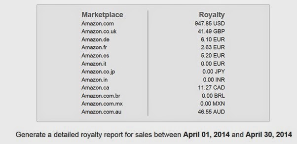 To give you some idea of how much money is involved in these rankings, first here's my sales for April 2014 (for all books in all Amazon markets) during a period when I had no freebies running.