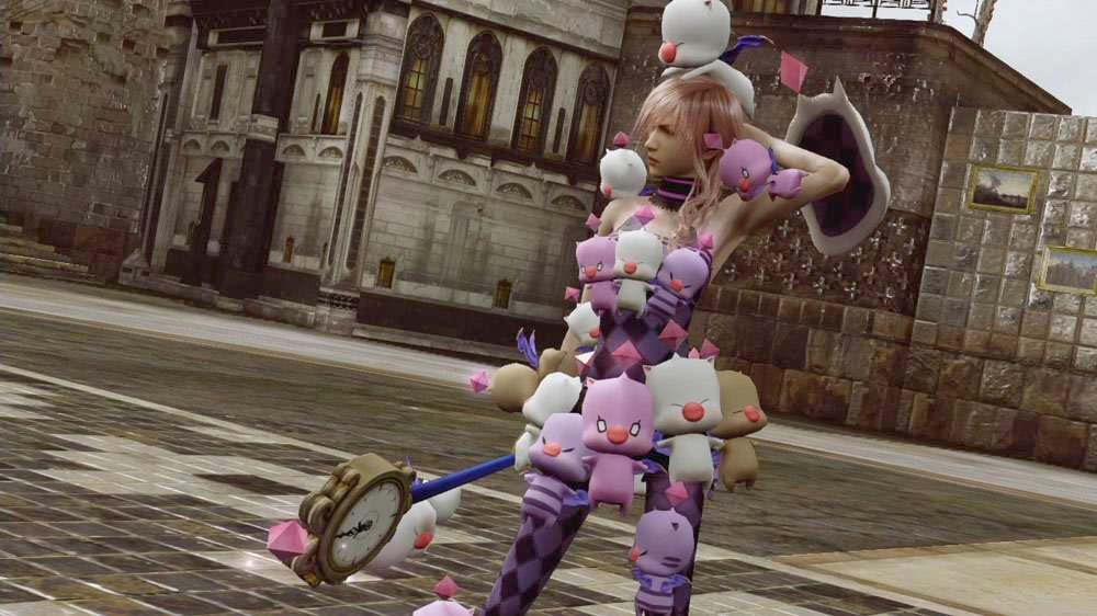 People are oddly calm about this whole world ending shtick, but I guess if you'd lived for five hundred years, the ennui factor would be high. Bunny has promised to bring Serah back to life (presumably in the new world) as a reward, and so Lightning runs about either killing things/people who attack her, or trying to bring them to some kind of emotional fulfilment so that their souls are fit to be salvaged. [Bunny only wants balanced souls, y'see.]