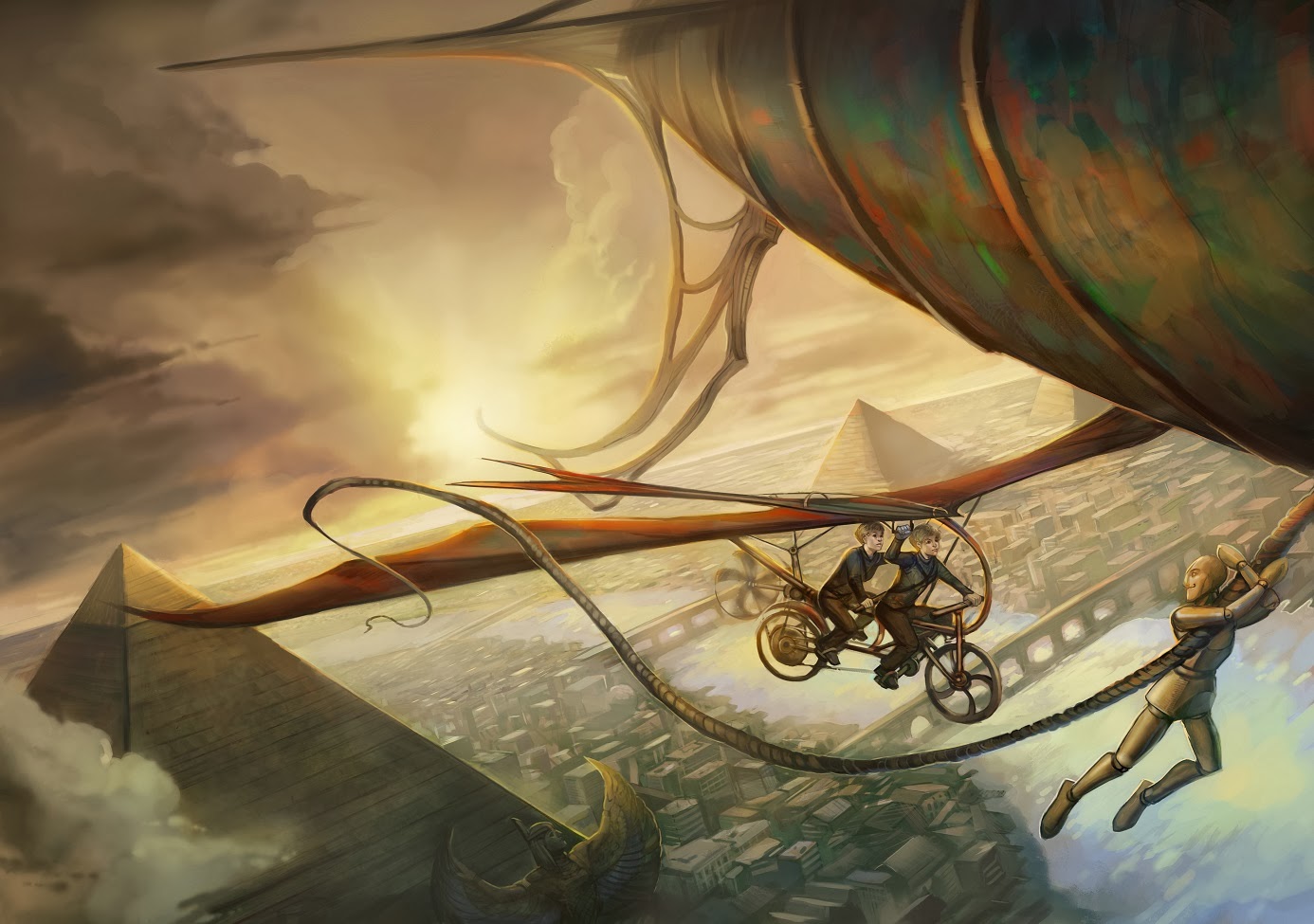 Not even if, to follow the first clue, Aunt Arianne must sell herself to a vampire.Here's the full image. It's my first wrap-around cover (which I wanted because I wanted that sweep of city with the pyramids rising above it).