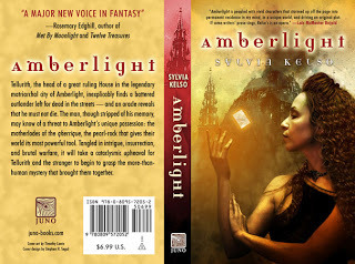 The generic SF/fantasy boundary concerned me deeply while I was struggling with the SF theory chapter of my PhD. Past/future-time, science/magic as unreality’s ennabling device, evidence of change, progress; I canvassed those and a number more of the abundant definitions. In the process I suddenly found myself, like Octavia Butler’s heroine in Exogenesis, conducting an experiment “in the field.” Once the opening paragraph of Amberlight arrived, the conscious project was to see how nearly I could make a text walk the tightrope, marked by Hambly’s Silicon Mage,between fantasy and SF.Hence, the McGuffin in Amberlight, the “qherrique” which turned up as opening donnée, became the basis for a thought experiment in gender-role reversals, as well as the key to society’s shape. Only women could “work” the mysterious – substance, entity, animal, vegetable, mineral? The society became a matriarchy. Qherrique’s most crucial quality was its psychic effects, coveted by every other society, making Amberlight-the-city unthinkably rich. But qherrique had a bouquet of other attributes – pizo-electric, photo-synthetic, it could be worked like a mix of pearl and stone to drive machines, to power tools, to produce guns. Light-guns and horseless vehicles. Is this fantasy, or is it SF?It charmed me immensely when I sent the novel in ms to Andrea (Hosth), asking outright, Do you read this as fantasy or as SF? And she responded that she couldn’t decide. The indecision reappeared among reviewers when I finally got the novel into print. It was political fantasy, it was high fantasy, it was a sub-genre of feminist SF: a whole grab-bag of answers turned up. Leading, perhaps, to the most interesting general conclusion – that the level and type of technology a writer consciously or haphazardly bestows on a specfic novel will not merely dictate the shape of that world and its societies, but even the genre in which the work will belong - or, if as with Amberlight, Loki or Coyote was around at the moment of inception, not.