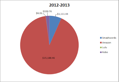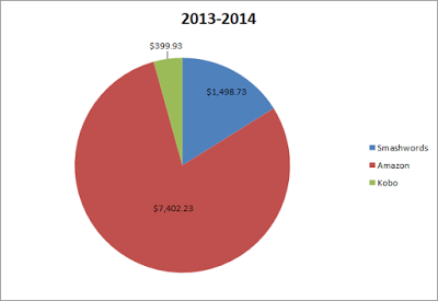 It's important to note that Smashwords pays quarterly and Amazon after 3 months, so the above doesn't reflect royalties earned in this period, but royalties paid. [Smashwords also covers Barnes & Noble, Apple, and a myriad smaller vendors.]