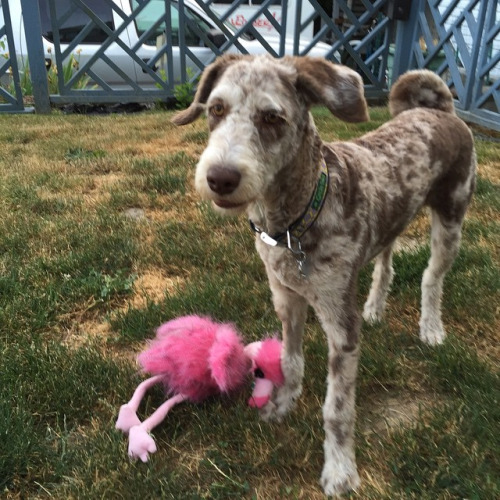 It’s puppy and her Flamingo! #puppytime #dogfancy #seattledogs