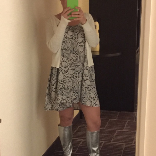Here’s the conundrum–I only brought one pair of pants to Portland. They were dirty so I hand-washed them. Now I can’t wear them out but it’s colder than I thought and I only have this one little cardigan…. If I want food or drink I have to leave the room in Les Giant Party Boots. This will guarantee some dude will try and talk to me before I have enough alcohol in my system to have recovered from my trip. … The only solution, I believe, is to take a taxi to a gay bar. Go to a gay bar, go directly to a gay bar. Do not pass go, do not collect two hundred dollars. #pride #portlandpride #portland #wardrobemalfunction #kinkyboots