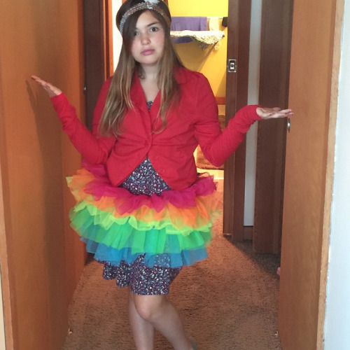 Mini, in her Pride outfit, if she were going to Pride. #gaypride #gayromance #loveislove #kidsrule