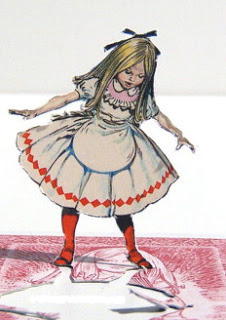 "'Não há ratos no ar, eu temo, mas você poderia pegar um morcego, eles são tão parecidos com os ratos, você sabe. Mas será que os gatos comem morcegos?' E aqui Alice começou a ficar sonolenta e continuou falando para si mesma, de uma maneira sonhadora. 'Gatos comem morcegos?', e às vezes 'Morcegos comem gatos?'. Como vocês podem ver, ela não conseguia responder a nenhuma das duas questões, portanto não importava muito de que maneira ela as colocava."