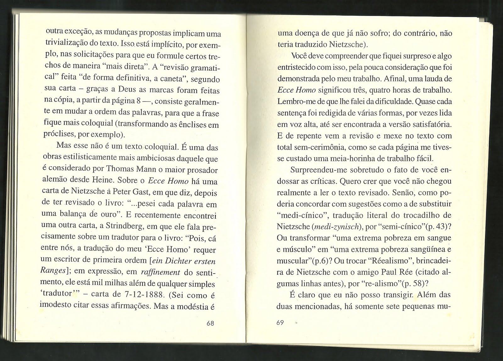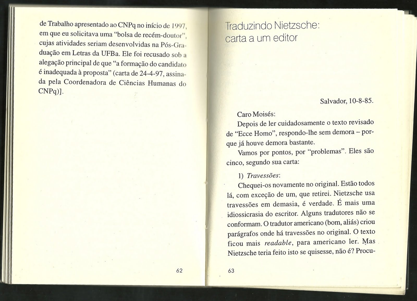 a carta foi publicada em sem cerimônia, esgotadíssima coletânea de textos variados de paulo césar souza, com o título de "traduzindo nietzsche: carta a um editor" (oiti, 1999). com a devida vênia, reproduzo-a aqui: