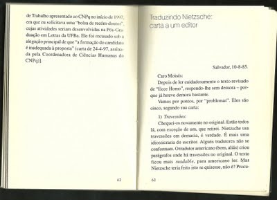 o caríssimo oséias ferraz, da editora e livraria crisálida de belo horizonte, traz à minha atenção uma carta que paulo césar souza - tradutor de nitezsche e freud - escreveu 25 anos atrás a seu editor da época, moisés limonad. o editor, felizmente, demonstrou sensatez e o tempo se confirmou como senhor da razão.