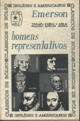 1. O mestre do transcendentalismo americano chegou ao Brasil com sete palestras que havia apresentado entre 1845 e 1847, e que saíram em livro em 1850 enfeixadas sob o título de Representative Men. Esses ensaios eram: "Uses of Great Men"; "Plato; or, the Philosopher"; "Swedenborg; or, the Mystic"; "Montaigne; or, the Skeptic"; "Shakspeare; or, the Poet"; "Napoleon; or, the Man of the World"; "Goethe; or, the Writer".