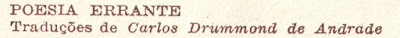 A Livraria José Olympio vai editar as traduções de poemas estrangeiros feitas por Manuel Bandeira, objeto de um lançamento há quase dez anos, sob o título de Poemas traduzidos. [...] A mesma livraria anuncia também os poemas traduzidos de Carlos Drummond de Andrade, intitulado Poesia Errante.Com efeito, o volume de Manuel Bandeira saiu em 1956, mas não o de Drummond. Fica o alerta