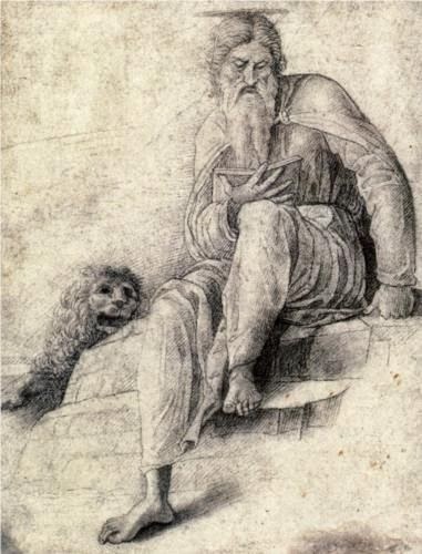jerônimo, tradutor da bíblia para o latim, padroeiro do ofício, esboço de mantegna: