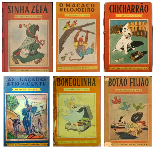 aqui surgem algumas questões interessantes: a impressão do primeiro volume, tomaz, foi feita na Itália e traz a data de 1946, sendo lançado apenas em junho do ano seguinte. por outro lado, a resenha sobre o livro noticia que a linha infantil comporá uma coleção "gigante" da casa. vemos que se sucedem dez volumes, nove deles da autoria do uruguaio constancio vigil, radicado na argentina. os volumes foram impressos em buenos aires, na gráfica da editorial atlántida, do próprio vigil. terá sido negociado um "pacote", visto que o ipê já divulgava desde o início que se trataria de uma coleção "gigante"? outro aspecto interessante é que as capas das edições brasileiras dos livros de vigil seguiam exatamente as mesmas capas das edições argentinas originais, mudando apenas o título traduzido e o nome da editora. vejam-se, por exemplo: