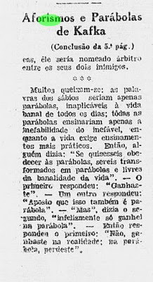 bem, no mesmo letras e artes, o suplemento literário dominical do jornal carioca a manhã, encontrei na edição de 26 de agosto de 1947 algumas parábolas e aforismos selecionados e traduzidos por otto maria carpeaux. em nossa cronologia, viriam após o n. 10 da joaquim: