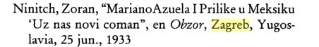 nessa sequência de apontamentos para uma breve crônica sobre o croata zoran ninitch, estabelecido no brasil desde 1924, apresentei até agora sua iniciativa editorial na machado & ninitch, aqui, suas versões de obras latino-americanas para o iugoslavo, aqui, e um pequeno episódio envolvendo sua pessoa, alfonso reyes e mariano azuela, aqui.