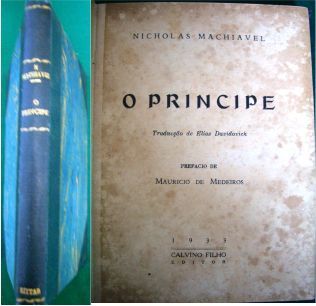 de maquiavel, cabe lembrar a tradução de elias davidovitch para o príncipe, com prefácio de maurício de medeiros, que saiu pela calvino filho em 1933. agradeço a indicação ao historiador e pesquisador dainis karepovs.