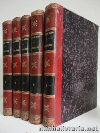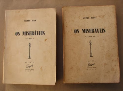 os miseráveis é um interessantíssimo caso em que a tradução brasileira saiu antes mesmo do lançamento da obra original. já comentei esse episódio aqui. no entanto, a tradução serializada a partir de março de 1862 no jornal do commercio - anônima, mas de provável autoria de justiniano josé da rocha e antônio josé fernandes dos reis - não foi a que saiu publicada no lançamento internacional simultâneo da obra em abril do mesmo ano. no rio de janeiro, uma das oito cidades escolhidas para esse lançamento, a edição saiu pela filial brasileira da livraria civilização/editor eduardo da costa santos, do porto, em tradução lusitana de antónio rodrigues de sousa e silva, em cinco volumes.