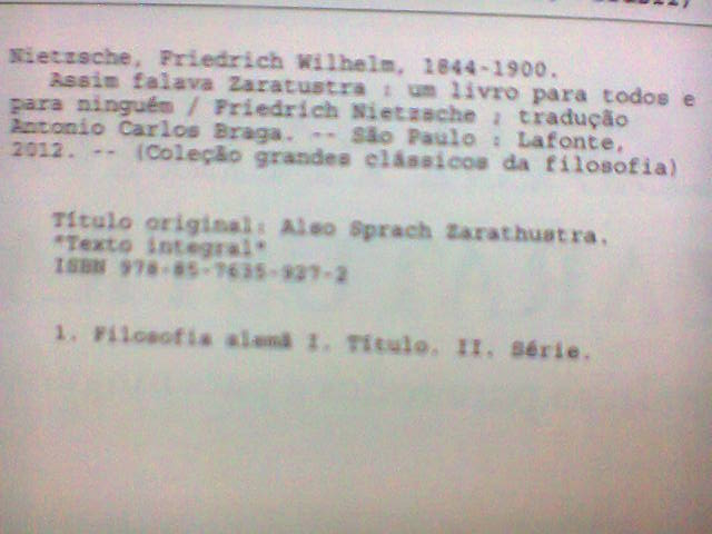 aí, everton marcos grison chamou minha atenção para uma outra edição de assim falava zaratustra, lançada agora em 2012. saiu na coleção "grandes clássicos da filosofia" da lafonte, selo do grupo editorial larousse do brasil (do qual também faz parte a editora escala educacional):