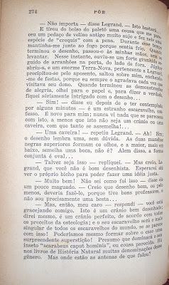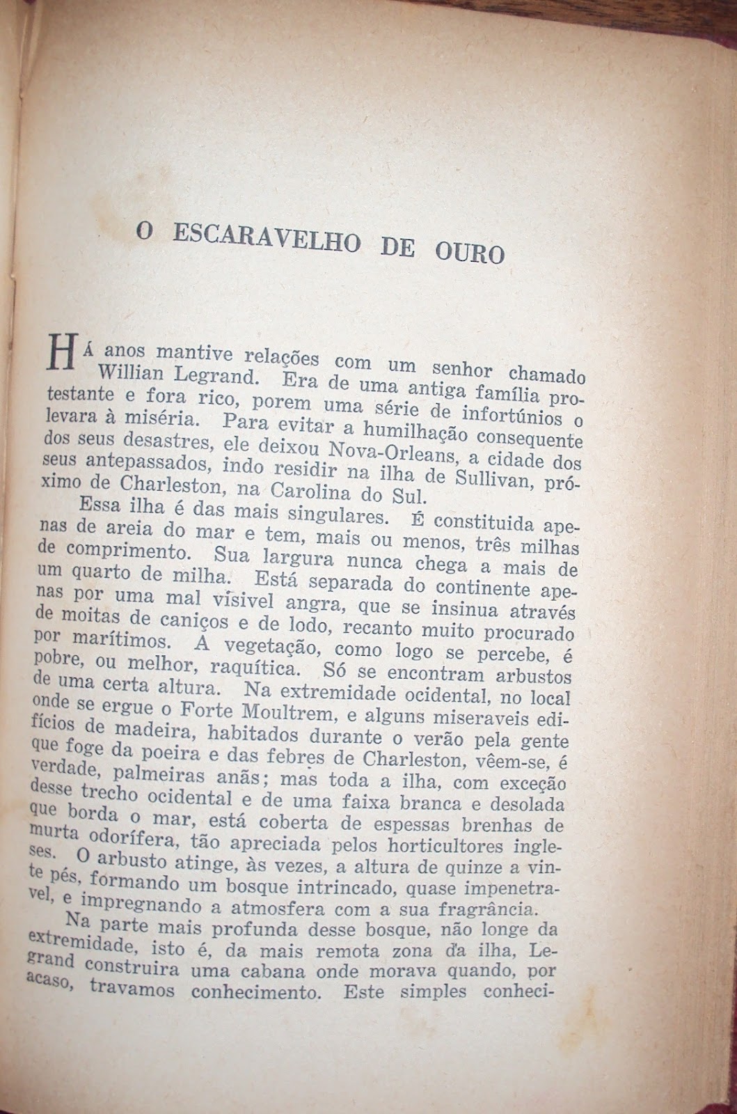 por outro lado, ainda em 1958 já se esboçara uma iniciativa neste sentido, com a publicação de histórias extraordinárias, antologia de contos de edgar allan poe com seleção, introdução e tradução de josé paulo paes, todavia apresentando um certo vezo inexplicado, a saber, a absoluta identidade entre a tradução de "o escaravelho de ouro" em seu nome e a tradução do mesmo conto por almiro rolmes barbosa e edgard cavalheiro em 1942, pela martins (ver aqui).