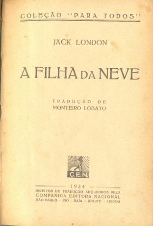 o primeiro romance de jack london, a daughter of the snows, de 1902, foi publicado no brasil em 1934 pela companhia editora nacional, em sua coleção "para todos", também em tradução de monteiro lobato. pelo que apontam minhas pesquisas, esta é a única tradução de que dispomos no brasil.