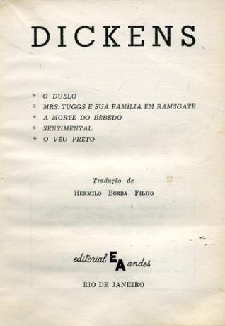 em 1957, é lançado um volume de contos, chamado apenas dickens, contendo "o duelo", "mrs. tugg e sua família em ramsgate", "a morte do bêbado", "sentimental" e "o véu preto", em tradução de hermilo borba filho, pelo editorial andes: