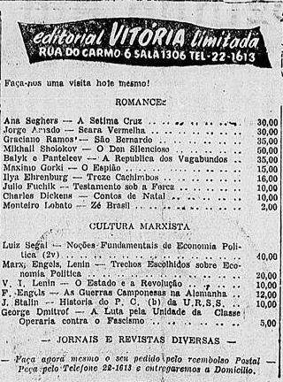 aqui um anúncio da editorial vitória, no jornal imprensa popular, de 10 de janeiro de 1951