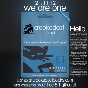 So get yourself over to Facebook and the Crooked Cat 1st birthday party and add your name to the growing list of Crooked Cat readers.