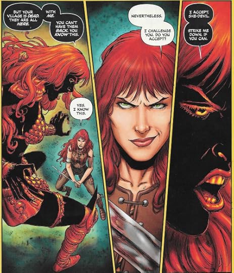 I’m catching up on Red Sonja and I really love this panel where she looks smug as fuck.