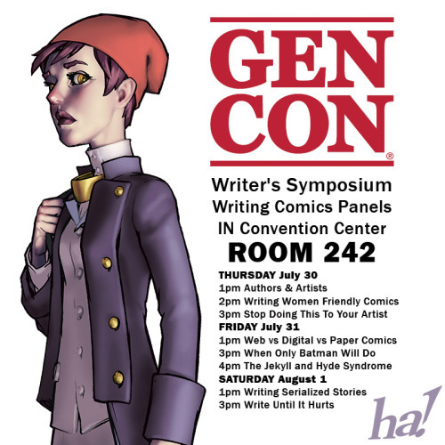 I’ll be at #GenCon doing writers panels next week! And yes, this includes the formerly woman-less Women Friendly Comics panel. Thankfully folks noticed and the much abashed organizers are adding actual WOMEN to that panel.