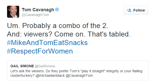 I’m pissed that Tom, Michael, and Gail were all at Comic-Con this year and they didn’t meet up to throw down. (Or record a new episode, which is frankly all the viewers care about.)