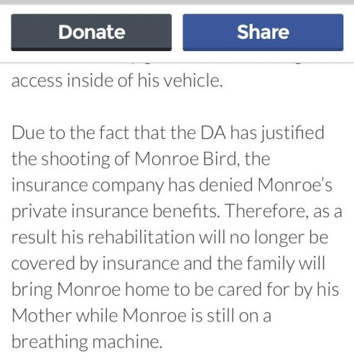 On February 4, sitting in his own car in his own neighborhood, talking to a female passenger, Monroe Bird was shot in the neck by a security guard, Ricky Stone, a 52-year-old white man. The bullet pierced the C3 vertebrae in his neck. Standing 6 feet, 8 inches, Bird, a gifted athlete, is now unable to move his arms or legs and relies on a ventilator to breathe.Heres what you need to know: